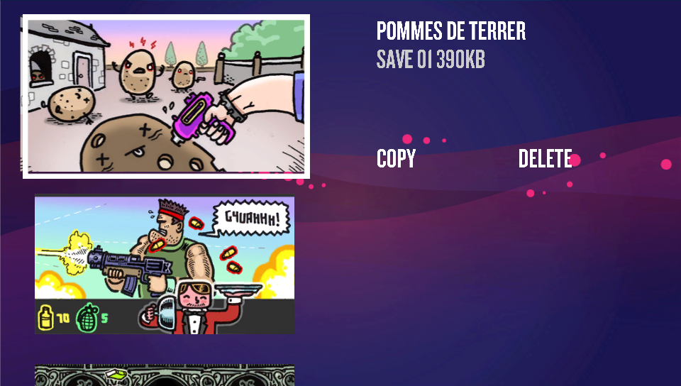 I’ve known Jerry Carpenter for years: we used to work together making mobile games in the strange days before iPhones, where he was the pixel artist and I was the coder. For the past few years he’s been doing a regular blog called KBsGameToilet, where he posts up cartoon descriptions of videogames that don’t exist. Jerry is amazing at drawing – his sketchbooks are full of odd little characters and ideas for videogame mechanics, and you normally can’t tell where one ends and the other begins. We really wanted to work with Jerry on Frobisher, but he was too busy to make us proper game sprites, so we figured that some of his Game Toilet ideas would be perfect for ‘Delete Rudolf’s Savegames’.