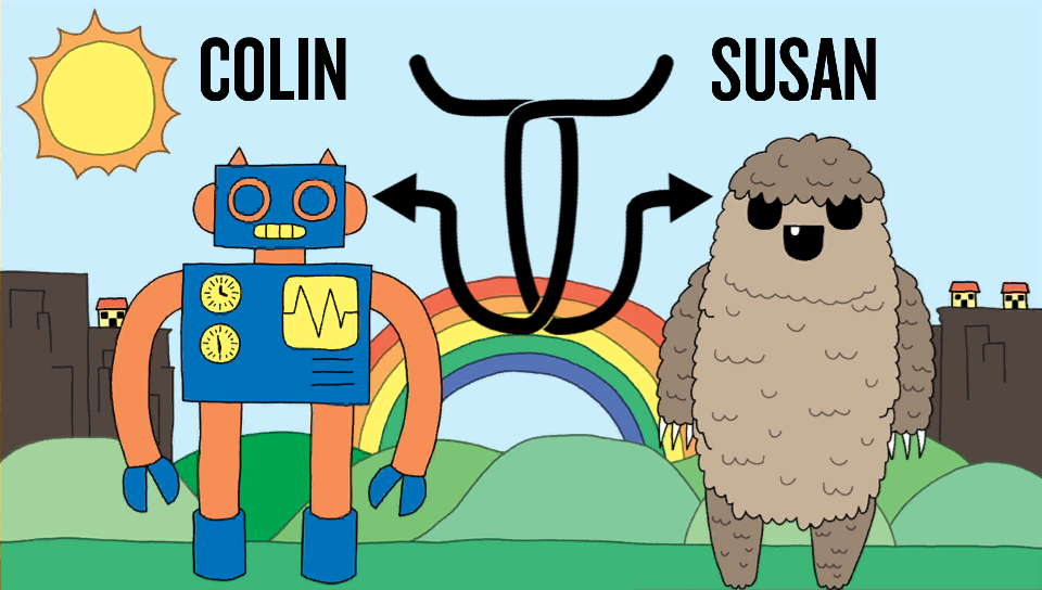 We’ve been fans of Davey ‘Swatpaz‘ Ferguson for ages now: I don’t allow more than a few months to go by without going back to his site to laugh at his amazing animation shorts, such as ‘Terry Runders Kicks a Stone‘ or the adventures of the Brillso Brothers. These days he is busy making a new series called Turbo Fantasy, but he was up for making us some cool characters for Frobisher Says. My favourite is ‘Strong Ice Cream’.