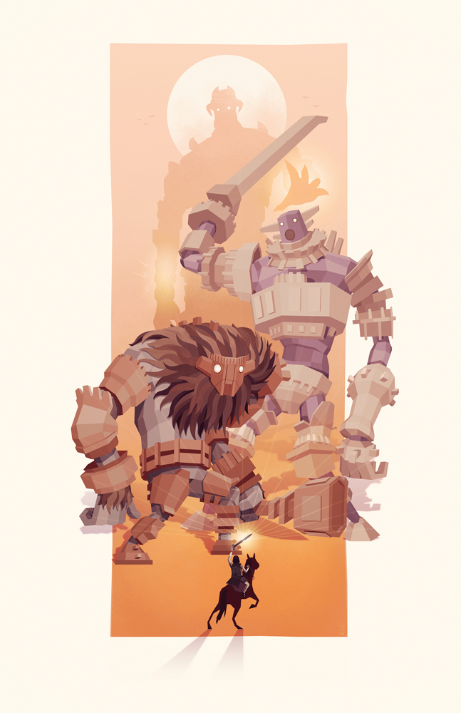 Says Courtney of his piece “Thy Next Foe is…” for the recent Fangamer VERSUS Attract Mode art show, “making a game that’s just sixteen boss fights in a row sounds like the work of a madman. Turning it into one of the greatest games of all time is the work of a genius.”
